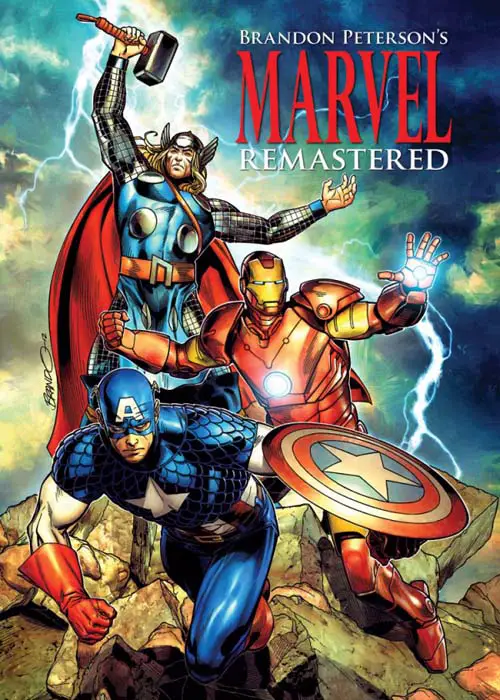El libro cuya portada podéis ver a continuación, se titula Brandon Peterson’s Marvel Remastered, y se presentará en la próxima Comic Con de Nueva York. Se trata de un libro de 48 páginas a todo color con tapa dura, y que cuenta en su interior con una recopilación de dibujos de Brandon Peterson para Marvel recopilados durante toda su carrera, mejorados con retoques, arreglos y explicaciones de su proceso creativo.