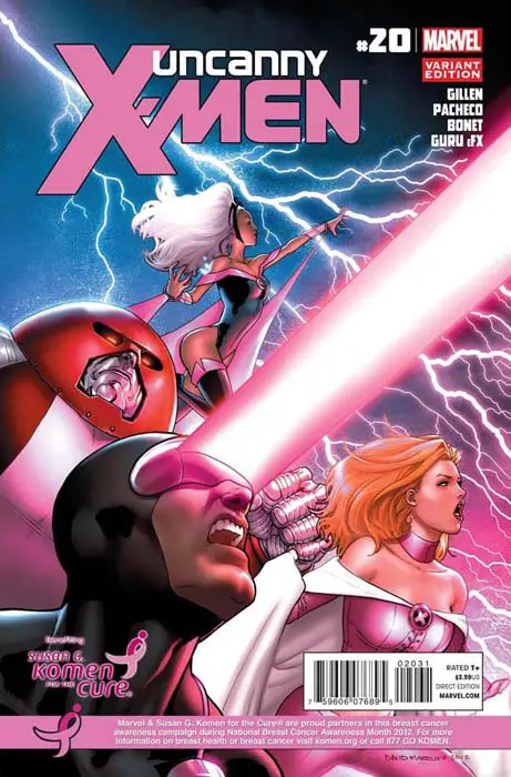 Marvel se enorgullece de colaborar con Susan G. Komen For the Cure para apoyar sus esfuerzos sin igual de alertar sobre el riesgo de contraer cáncer tanto en mujeres como en hombres. Estamos en una posición única de educar a todos nuestros fans e incrementar la información de las formas que existen para luchar y reducir el riesgo de este desastre usando nuestros cómics y presencia online.