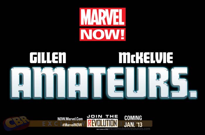 Segundo teaser de esta tercera ronda de pseudo-anuncios de nuevas series y nuevos equipos creativos para Marvel NOW!. Si ayer vimos una imagen con la palabra Salvaje y el nombre de Frank Cho, lo que nos llega hoy lleva los nombres de Kieron Gillen y Jaimie McKelvie junto a la palabra Amateurs.