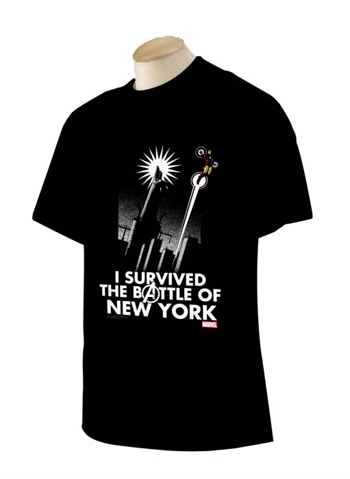 Sabemos que viste y que te encantó Los Vengadores, pero ahora puedes mostrar al mundo que sobreviviste a la batalla de superhéroes en la gran pantalla que aún tiene tu mandíbula en el suelo. Disponible en tallas S-XXL (hasta fin de existencias), esta camiseta de edición limitada dibujada por Matt Ferguson hará saber a tus amigos que estuviste allí cuando los Vengadores se reunieron por primera vez y que sobreviviste a la Batalla de Nueva York. Puedes adquirir esta camiseta de forma exclusiva en el stand de Marvel (#1838), pero las tallas desaparecerán rápido.