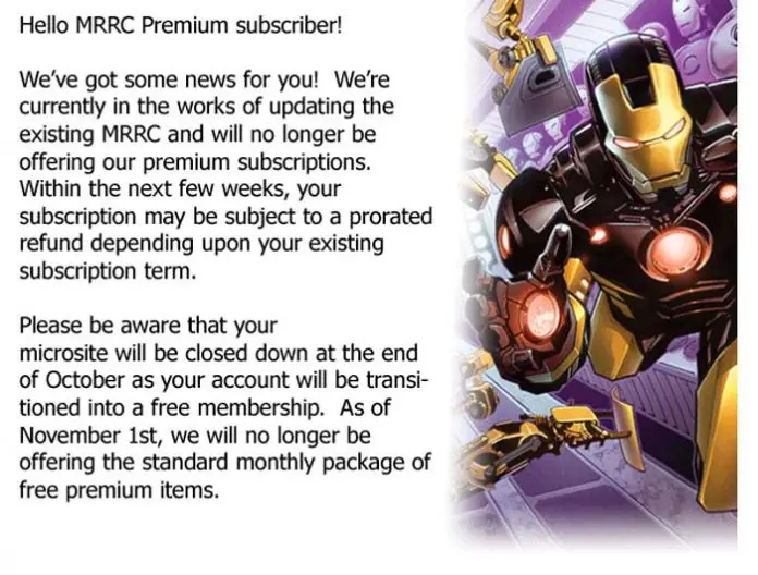 Como podéis ver, este programa toca a su fin. Básicamente, el texto del correo electrónico viene a decir que están actualizando el servicio y que ya no habrá más cuentas premium, por lo que se procederá a su eliminación y al reembolso prorrateado de los importes conrrespondientes. Eso sí, todo apunta a que el próximo fin de semana se anunciarán en la Comic Con de Nueva York los planes para reemplazar a este servicio.