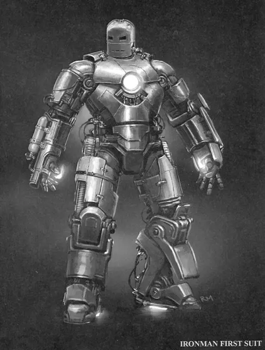 La idea era que la construcción de Tony de la Mark I fuese a partir de cajas de armamento y equipo, y todo tuviese un aspecto de que eran objetos encontrados. Basura, metal estropeado de diferentes formas. Algunos tenían cosas pintadas, otros tenían marcas para hacerlas parecer partes de misiles. Tenía que tener soldaduras. Tenía que ser muy hecho a mano, algo forjado para parecer eso.