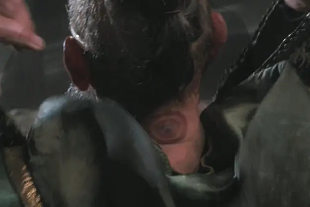 Lo comentamos en la entrada en la que mostramos el tráiler de Iron Man 3 en imágenes, pero vista la reacción general de los fans, creemos que esto se merece una publicación propia. Si os fijáis bien en el tráiler, hay un momento en el que se puede ver al Mandarín de espaldas arreglándose la coleta, dejando al descubierto un tatuaje en su nuca que no es otra cosa que el escudo del Capitán América con la «A» de Avengers (Vengadores) en el medio.