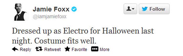 Parece que ya ha llegado el momento de parar de rumorear que Electro podría ser el villano de The Amazing Spider-Man 2, porque según Variety, Sony está teniendo reuniones con actores para interpretar el papel. Uno de esos actores, del que la web dice que aún está en las primeras negociaciones, es Jamie Foxx. De hecho, aquí os dejamos lo que ha publicado el propio Foxx en Twitter: