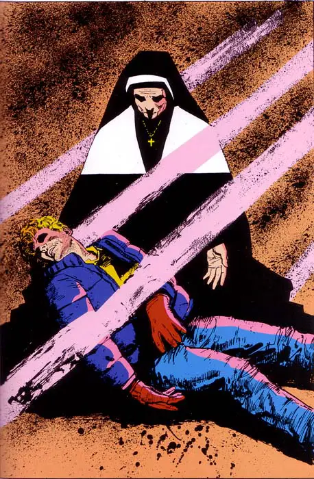 Lo que Miller hizo con Daredevil es mítico, asombroso. No sólo por revivir de una forma indeleble un personaje que se encontraba en la últimas, sino por darle nueva vida, por moldearlo desde el inicio y en el proceso crear (o recrear) una serie de actores inolvidables llenos de vida, desde Foggy Nelson a Stick. Y no sólo eso. No contento con inventarse uno de los personajes femeninos con más personalidad de la Marvel y en un acto de rebeldía creativa inusitado, Miller mata a Elektra, su creación, en el número 181, convirtiéndola inmediatamente en carne de leyenda e iniciando con este acto un proceso de deconstrucción de Daredevil que culminaría a medias en el último número de su primera etapa al frente de la colección: el 191. El mítico “Ruleta”.