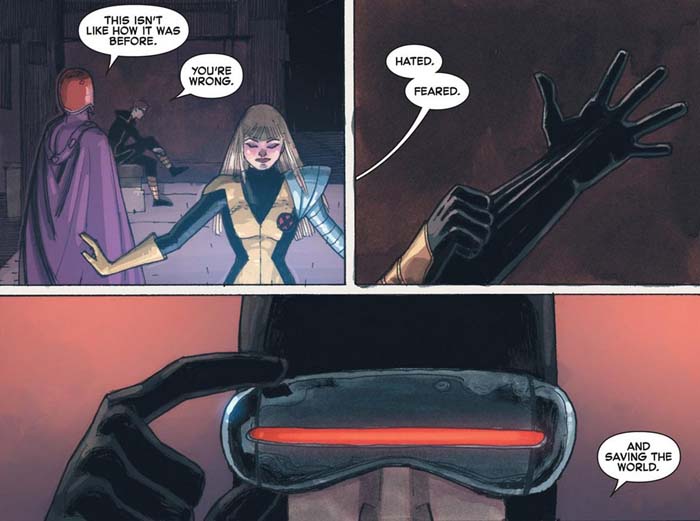 En el número final de la serie, escapa de prisión, pero claramente tiene una nueva actitud peligrosa, como se puede deducir de cómo trató a los prisioneros que asesinaron a Jake y al encargado que le encarceló y puso a los mutantes en riesgo. Que esto sea un indicativo de que Scott Summers es un villano o un terrorista está sujeto a debate. En teoría, Cíclope es bueno, pero su actitud de ahora es una ciertamente compartida por Magneto, hacer cualquier cosa que sea necesaria para proteger a la raza mutante. A continuación os dejamos una selección de escaneos de AvX: Consequences Nº 5, pero que sepáis que el cómic está ya en las tiendas estadounidenses desde ayer.