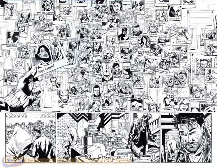 Esta tarde os mostramos un par de nuevas portadas y algunas páginas interiores de Age of Ultron Nº 2 en las que destacaba cierto protagonismo del Caballero Luna. Sin embargo, hay un detalle bastante interesante que, en un principio, pasó desapercibido. Mirad, fijaros bien en el centro de la siguiente imagen, hay una foto con la cara de Rom que además está etiquetada con su nombre.