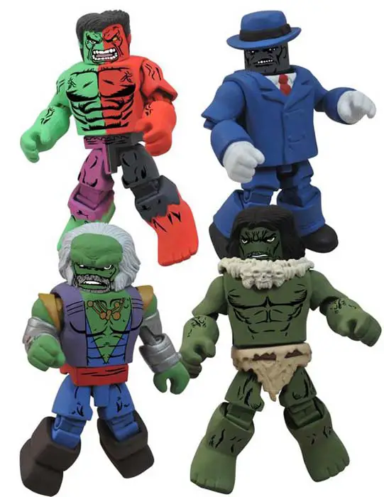 Una vez más, Art Asylum y Diamond Select Toys se unen para lanzar un nuevo pack de sus Minimates, esta vez centrándose en Hulk y personajes relacionados con el Gigante Verde. El pack está formado por cuatro figuras: