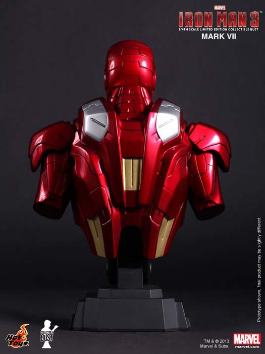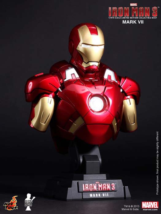 La prestigiosa compañía de coleccionables Hot Toys ha desvelado sus últimas adiciones a la colección de Bustos Coleccionables de escala 1/4, la armadura Iron Patriot de James Rhodes y la Mark VII de Iron Man en la película Iron Man 3.