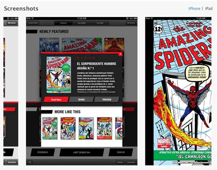 Gracias a esto, los usuarios españoles pueden descargarse la aplicación Marvel Comics Global, disponible para iPhone, iPad y iPod Touch, teniendo acceso a un catálogo de cómics que se presenta en 12 idiomas, estando entre ellos el español.