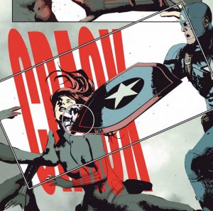 Así, en un giro de los acontecimientos, no es el Capitán América quien muere a los pies del Capitolio, sino Natasha. Andrea Srrentino, que está que se sale, nos muestra la crudeza de un golpe fatídico en el peor lugar y en el peor momento posible.