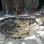 Hace unos días el equipo de Iron Man 3 estuvo rodando en la pequeña ciudad de Rose Hill, Carolina del Norte. Como podéis ver más abajo, gracias a CBM, los escenarios estaban cubiertos de nieve artificial y las tiendas estaban decoradas con motivos navideños, lo que viene a confirmar algo que ya sabíamos, que la película estará ambientada en esa época del año. Además, también tenemos la curiosa imagen de un cráter gigante rodeado de flores, cruces y mensajes, algo típico que la gente hace como homenaje cuando alguien muere en un lugar concreto.
